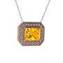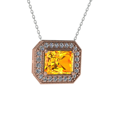 Sitrin ve beyaz zirkon 8 ayar rose altın kolye (40 cm beyaz altın rolo zincir)