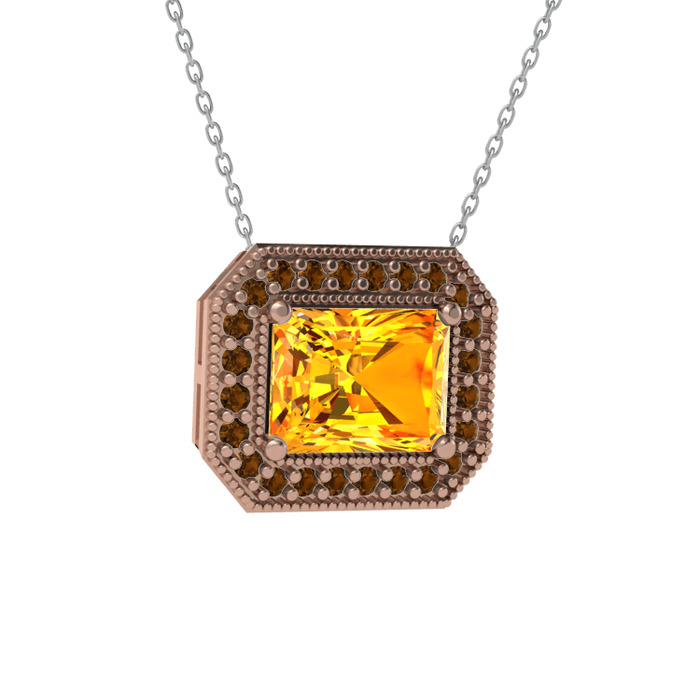 Sitrin ve dumanlı kuvars 18 ayar rose altın kolye (40 cm gümüş rolo zincir)