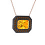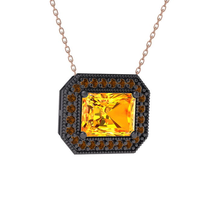 Sitrin ve dumanlı kuvars 925 ayar siyah rodyum kaplama gümüş kolye (40 cm rose altın rolo zincir)