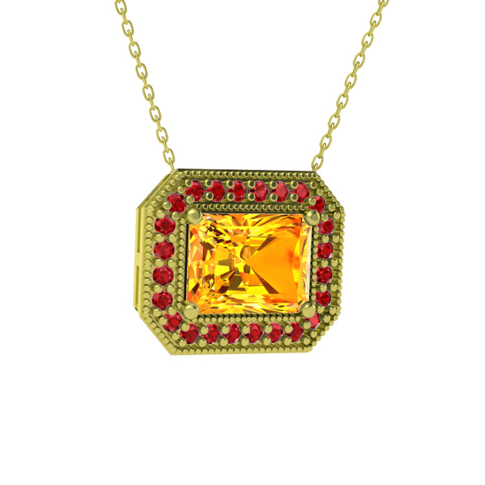 Sitrin ve garnet 925 ayar altın kaplama gümüş kolye (40 cm gümüş rolo zincir)