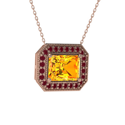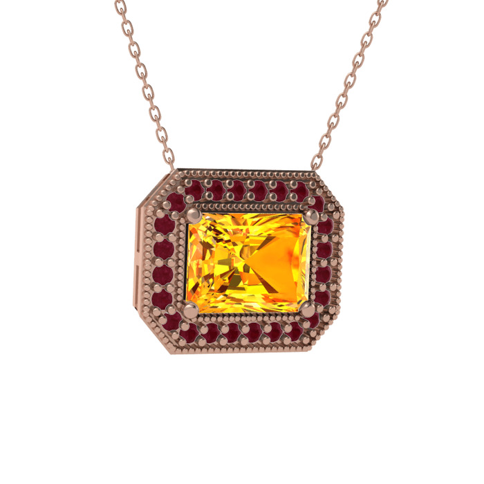Sitrin ve kök yakut 8 ayar rose altın kolye (40 cm rose altın rolo zincir)