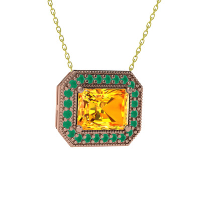 Sitrin ve kök zümrüt 8 ayar rose altın kolye (40 cm gümüş rolo zincir)