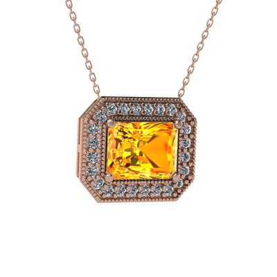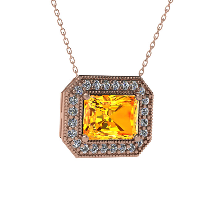 Sitrin ve pırlanta 8 ayar rose altın kolye (0.253 karat, 40 cm rose altın rolo zincir)