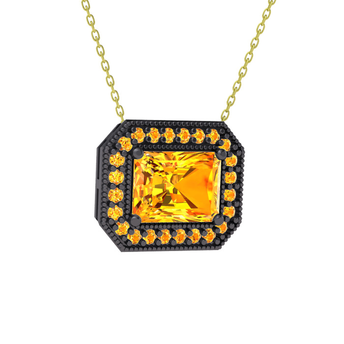 Esinti Dikdörtgen Kolye - Sitrin 925 ayar siyah rodyum kaplama gümüş kolye (40 cm gümüş rolo zincir)