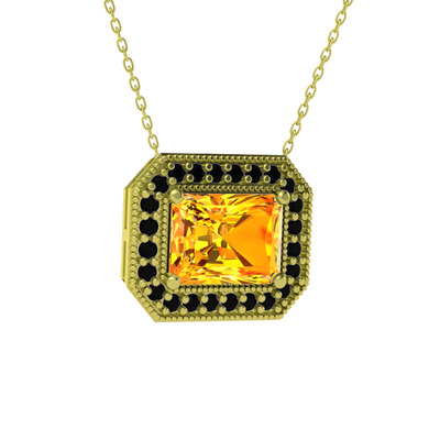Sitrin ve siyah zirkon 18 ayar altın kolye (40 cm altın rolo zincir)