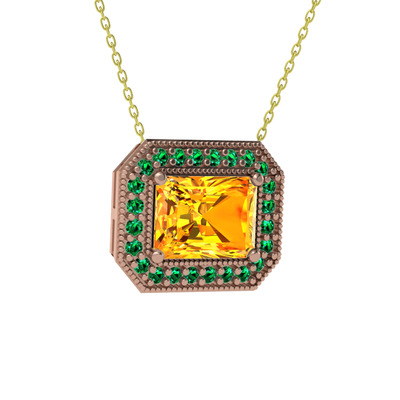 Sitrin ve yeşil kuvars 8 ayar rose altın kolye (40 cm altın rolo zincir)