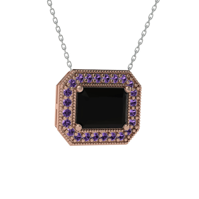 Siyah zirkon ve ametist 18 ayar rose altın kolye (40 cm beyaz altın rolo zincir)