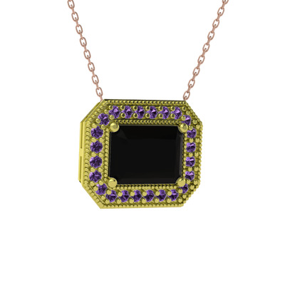 Siyah zirkon ve ametist 8 ayar altın kolye (40 cm gümüş rolo zincir)