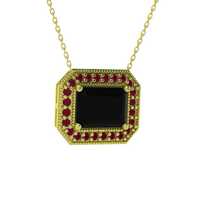 Siyah zirkon ve kök yakut 925 ayar altın kaplama gümüş kolye (40 cm gümüş rolo zincir)
