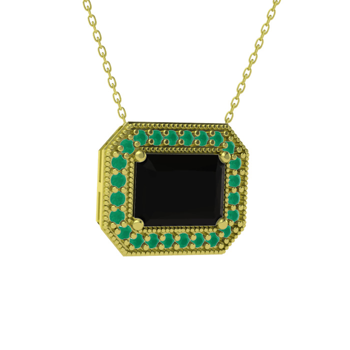 Siyah zirkon ve kök zümrüt 14 ayar altın kolye (40 cm altın rolo zincir)