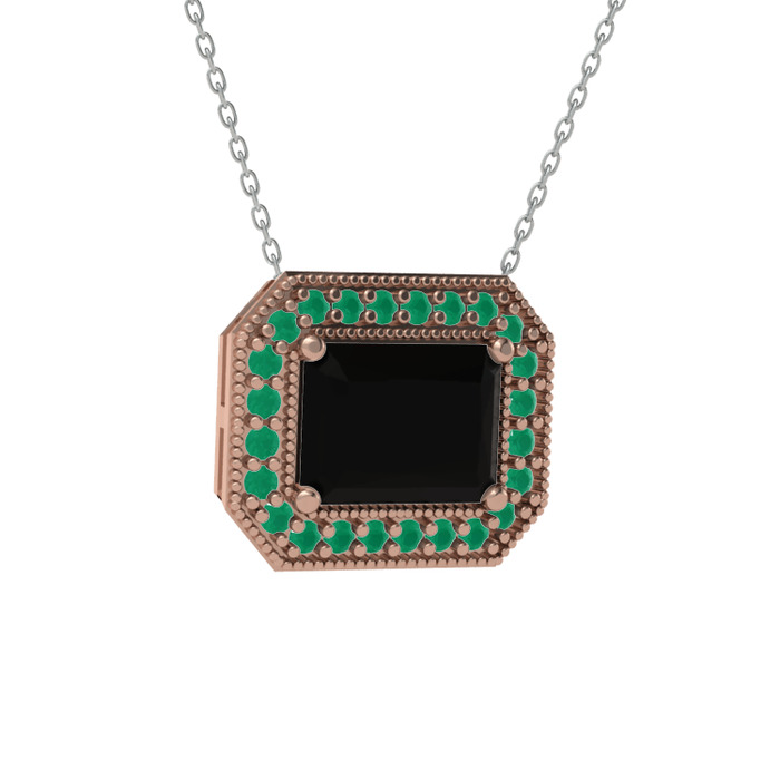 Siyah zirkon ve kök zümrüt 14 ayar rose altın kolye (40 cm beyaz altın rolo zincir)