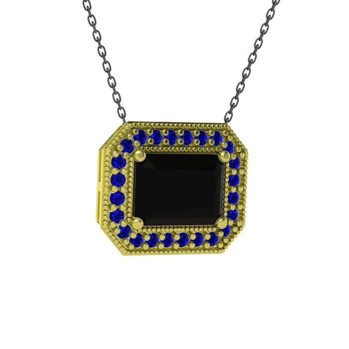 Siyah zirkon ve lab safir 18 ayar altın kolye (40 cm gümüş rolo zincir)