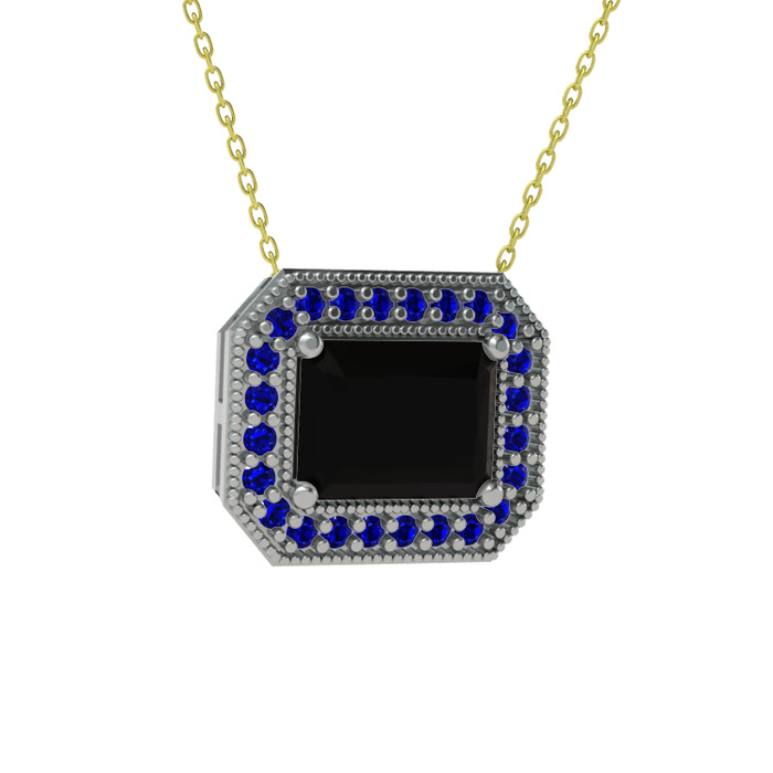 Siyah zirkon ve lab safir 8 ayar beyaz altın kolye (40 cm gümüş rolo zincir)