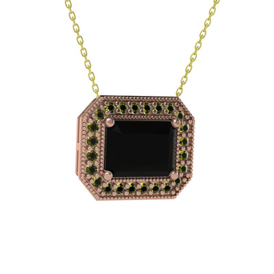 Siyah zirkon ve peridot 18 ayar rose altın kolye (40 cm altın rolo zincir)