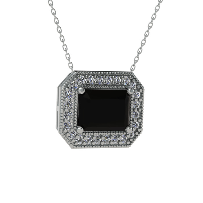 Siyah zirkon ve pırlanta 14 ayar beyaz altın kolye (0.253 karat, 40 cm gümüş rolo zincir)