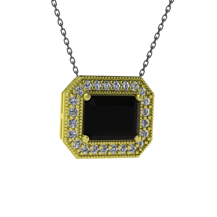 Siyah zirkon ve pırlanta 8 ayar altın kolye (0.253 karat, 40 cm gümüş rolo zincir)