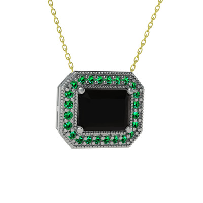 Siyah zirkon ve yeşil kuvars 18 ayar beyaz altın kolye (40 cm altın rolo zincir)