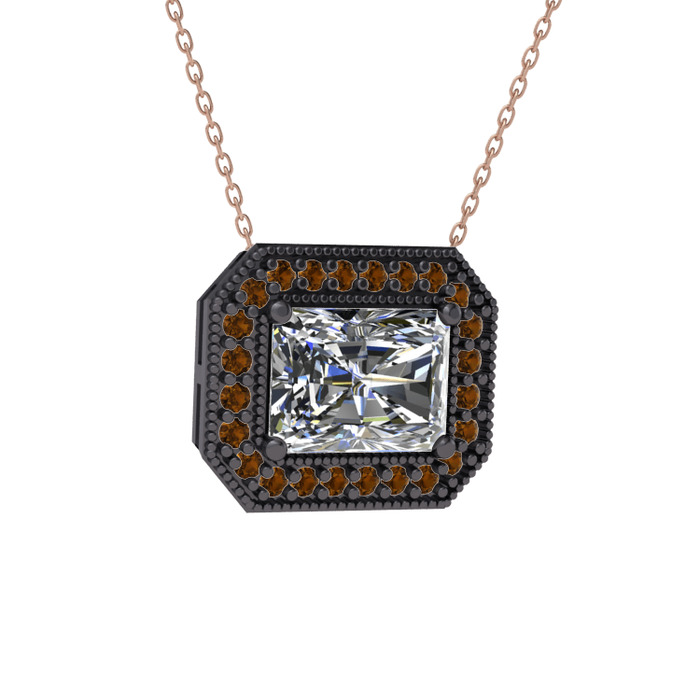 Swarovski ve dumanlı kuvars 925 ayar siyah rodyum kaplama gümüş kolye (40 cm rose altın rolo zincir)