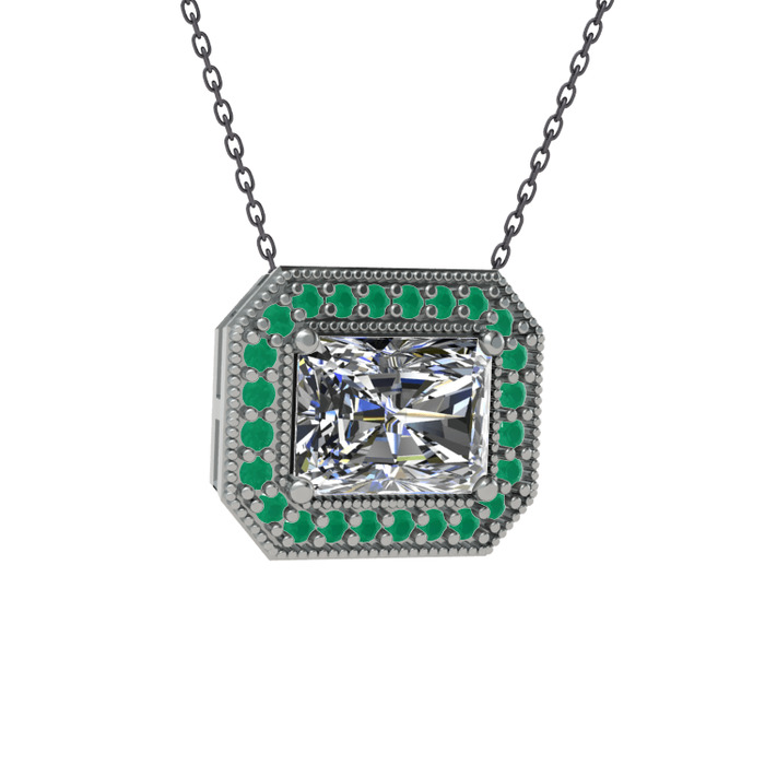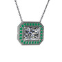Swarovski ve kök zümrüt 8 ayar beyaz altın kolye (40 cm gümüş rolo zincir)