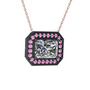 Swarovski ve pembe kuvars 925 ayar siyah rodyum kaplama gümüş kolye (40 cm rose altın rolo zincir)