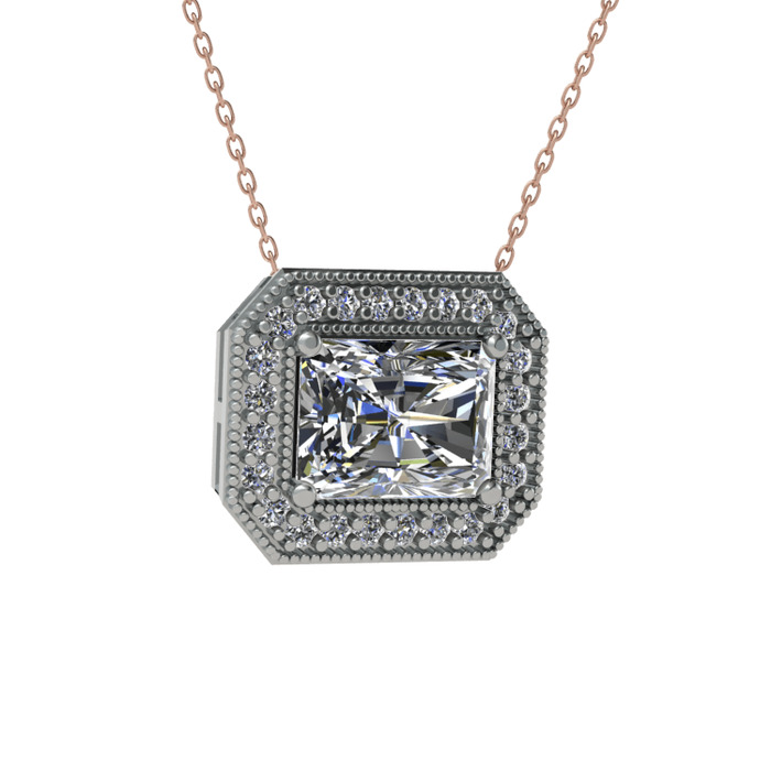 Swarovski ve pırlanta 8 ayar beyaz altın kolye (0.253 karat, 40 cm rose altın rolo zincir)