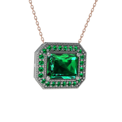 Yeşil kuvars 8 ayar beyaz altın kolye (40 cm rose altın rolo zincir)