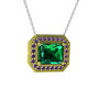 Yeşil kuvars ve ametist 925 ayar altın kaplama gümüş kolye (40 cm beyaz altın rolo zincir)