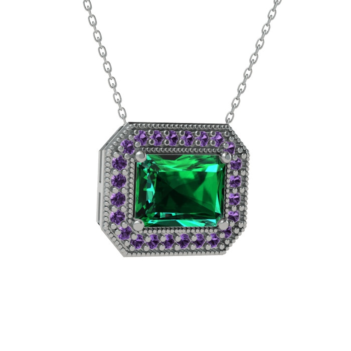 Yeşil kuvars ve ametist 925 ayar gümüş kolye (40 cm gümüş rolo zincir)