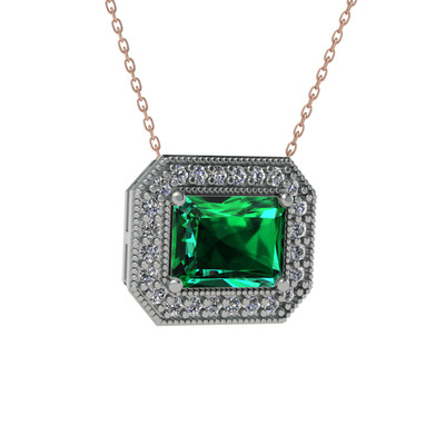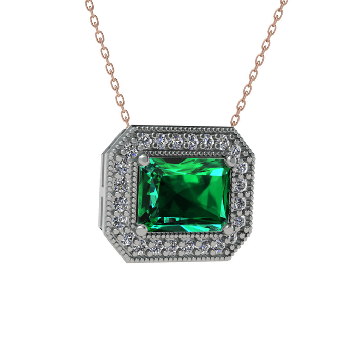 Yeşil kuvars ve beyaz zirkon 14 ayar beyaz altın kolye (40 cm rose altın rolo zincir)