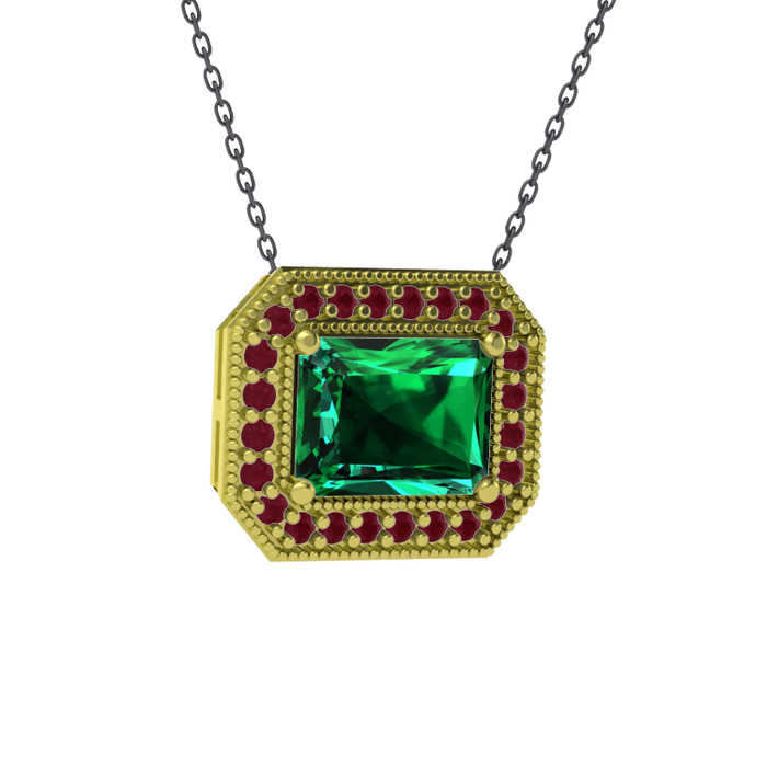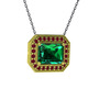 Yeşil kuvars ve kök yakut 14 ayar altın kolye (40 cm gümüş rolo zincir)