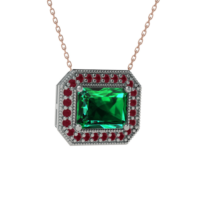 Yeşil kuvars ve kök yakut 8 ayar beyaz altın kolye (40 cm rose altın rolo zincir)