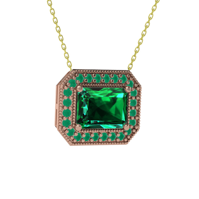Yeşil kuvars ve kök zümrüt 14 ayar rose altın kolye (40 cm altın rolo zincir)