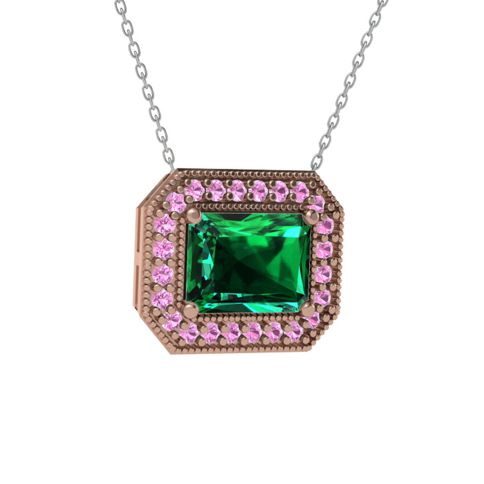 Yeşil kuvars ve pembe kuvars 18 ayar rose altın kolye (40 cm gümüş rolo zincir)