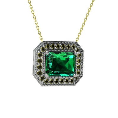 Yeşil kuvars ve peridot 18 ayar beyaz altın kolye (40 cm altın rolo zincir)