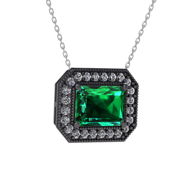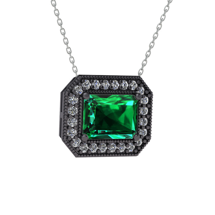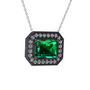 Yeşil kuvars ve pırlanta 925 ayar siyah rodyum kaplama gümüş kolye (0.253 karat, 40 cm gümüş rolo zincir)