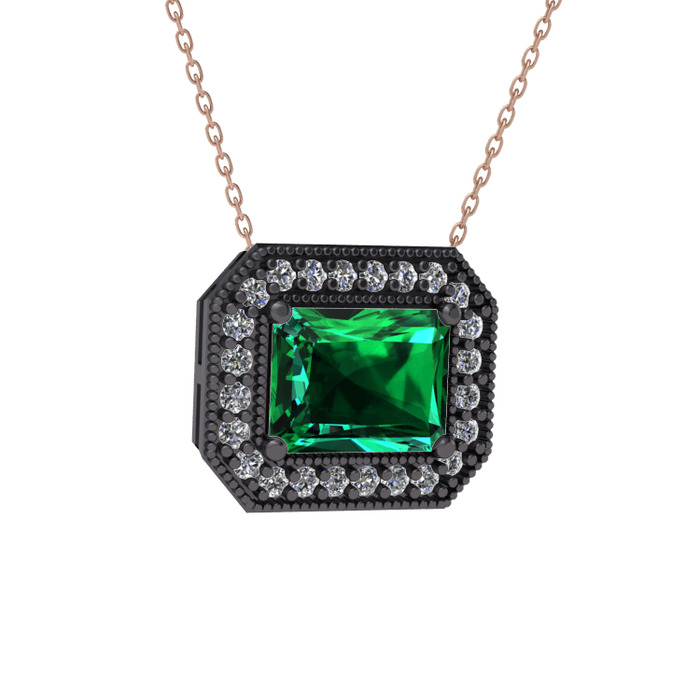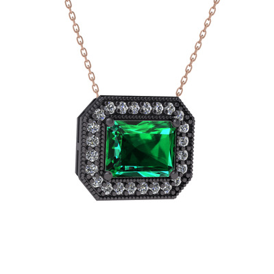 Yeşil kuvars ve pırlanta 925 ayar siyah rodyum kaplama gümüş kolye (0.253 karat, 40 cm rose altın rolo zincir)