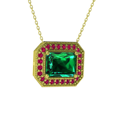Yeşil kuvars ve rodolit garnet 14 ayar altın kolye (40 cm altın rolo zincir)