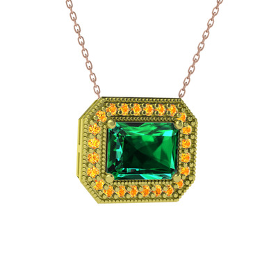 Yeşil kuvars ve sitrin 18 ayar altın kolye (40 cm rose altın rolo zincir)