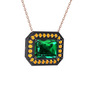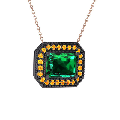 Yeşil kuvars ve sitrin 925 ayar siyah rodyum kaplama gümüş kolye (40 cm rose altın rolo zincir)