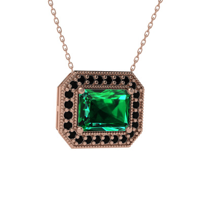 Yeşil kuvars ve siyah zirkon 8 ayar rose altın kolye (40 cm rose altın rolo zincir)