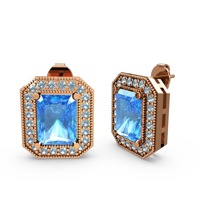 Akuamarin 18 ayar rose altın küpe