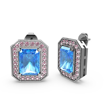 Akuamarin ve pembe kuvars 8 ayar beyaz altın küpe