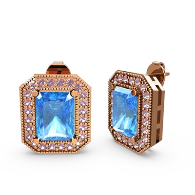 Akuamarin ve pembe kuvars 8 ayar rose altın küpe