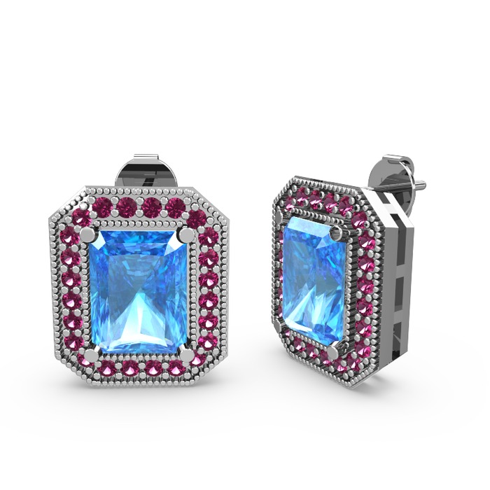 Akuamarin ve rodolit garnet 14 ayar beyaz altın küpe