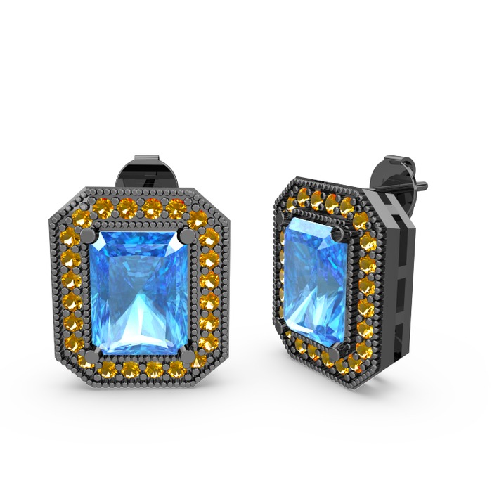 Akuamarin ve sitrin 925 ayar siyah rodyum kaplama gümüş küpe