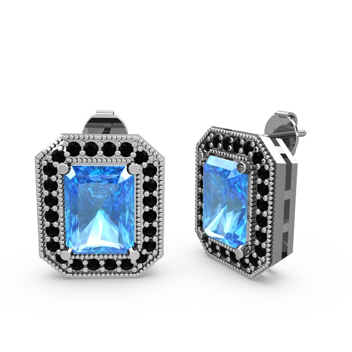 Akuamarin ve siyah zirkon 925 ayar gümüş küpe