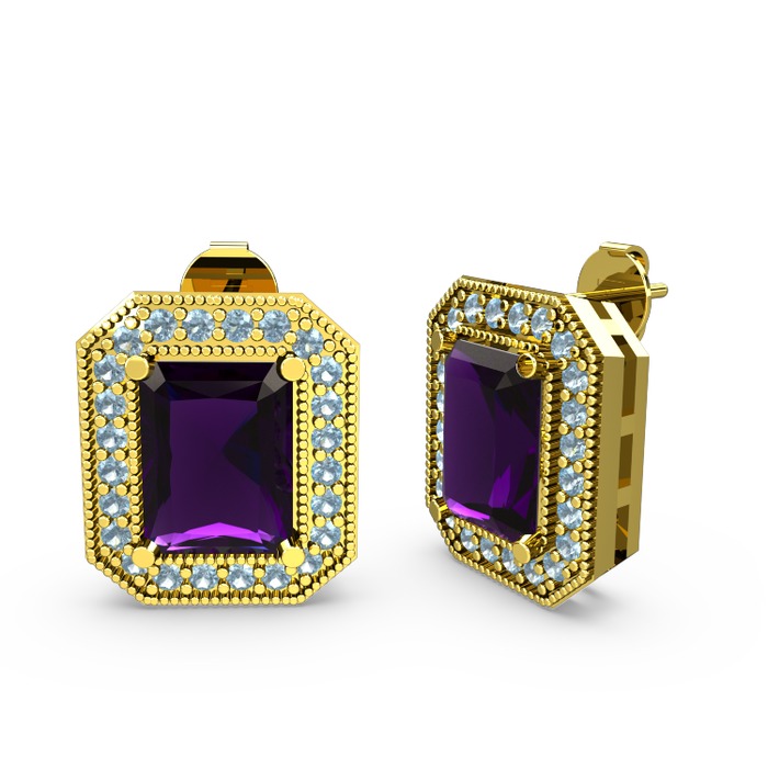 Ametist ve akuamarin 8 ayar altın küpe
