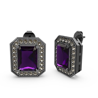 Ametist ve dumanlı kuvars 925 ayar siyah rodyum kaplama gümüş küpe