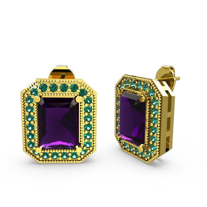 Ametist ve yeşil kuvars 8 ayar altın küpe