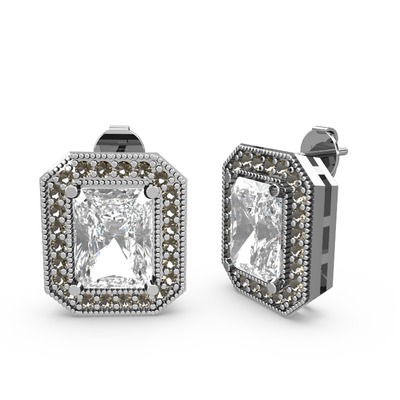 Beyaz zirkon ve dumanlı kuvars 925 ayar gümüş küpe